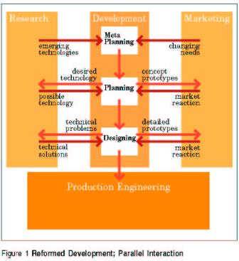 Implementing a reformed development process creates a much more agile advanced planning system able to seize opportunities almost before they appear. Figure 1 diagrams the organization in the context of strongly associated Research and Marketing functions made substantially more effective by new possibilities for relationship with Development.