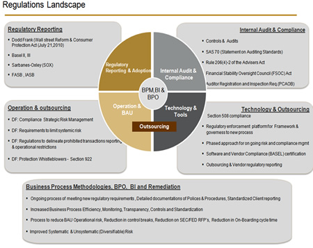 • In June 2009 President Obama introduced a proposal for a “sweeping overhaul” of the United States financial regulatory system, a motto best depicted by “Dodd-Frank Wall Street Reform and Consumer Protection Act”, which was signed into law on July 21, 2010. The “Dodd-Frank Act” added to the list of existing regulatory and compliance initiatives like Sox, Basel II, III , SAS 70, Section 508 compliance etc……
